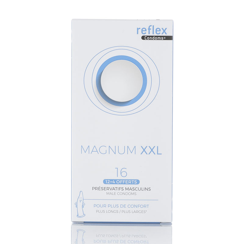 Créé en 2006, le modèle Reflex Condoms Magnum XXL affiche sa couleur : avec une longueur minimale de 210 millimètres pour une largeur moyenne de 60 mm, il s’adapte à tous ceux qui se sentent à l’étroit dans les modèles classiques.
